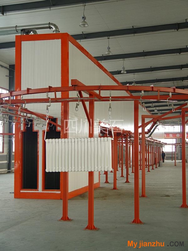 喷塑流水线主要配套设备:悬挂链输送设备,不锈钢喷淋清洗剂,脱水烘干炉,喷粉房,自动喷涂机,升降机,隔离房,燃烧室,固化烘干炉,废气处理设备,废水处理设备等。