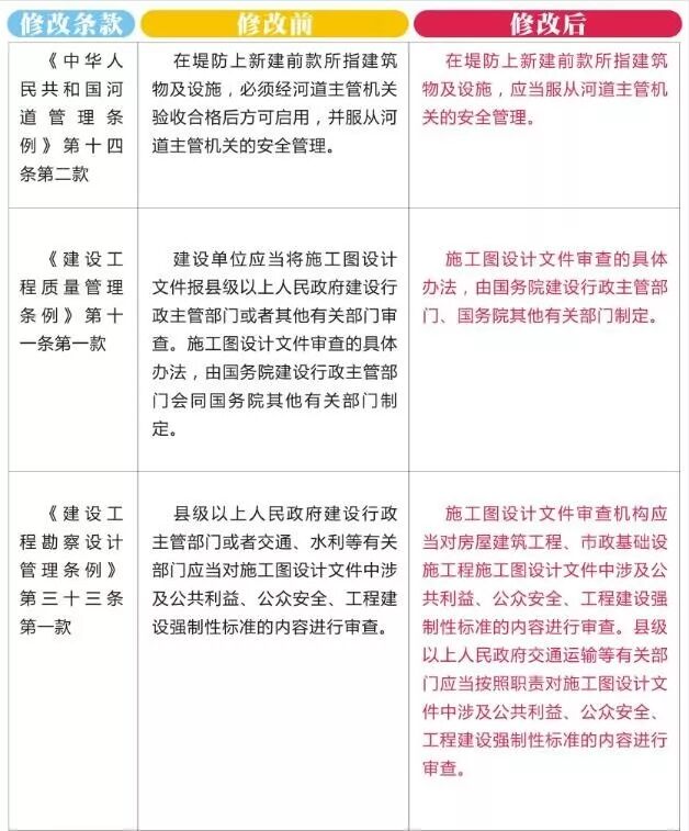 通过修改《建设工程质量管理条例》、《建设工程勘察设计管理条例》等15部行政法规的35个条款,取消了防雷单位资质许可等20项由地方实施的行政许可项目。其中,多项删改涉及住建领域。
