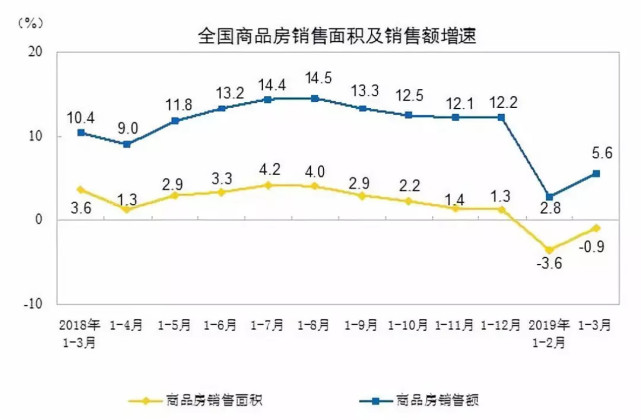 他的话很快得到了印证。国家统计局最新数据显示,1-3月份,商品房销售面积29829万平方米,虽然同比下降0.9%,但降幅比1-2月份收窄了2.7个百分点。商品房销售额27039亿元,增长5.6%,增速提高2.8个百分点。