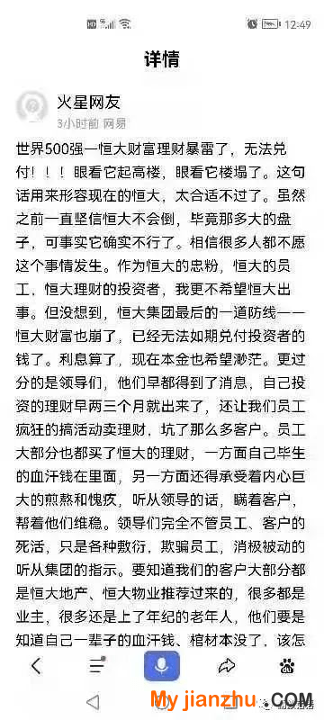 再加上恒大对供应商货款商票一直在拖延不给兑付,口碑越来越差。而恒大财富暴雷的传闻,则是让恒大雪上加霜。