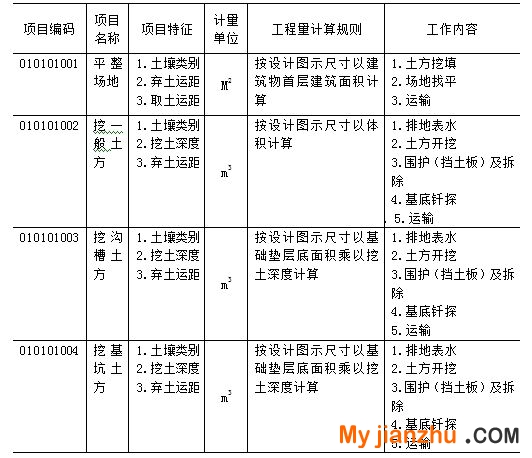本工程土方工程涉及的清单项目
